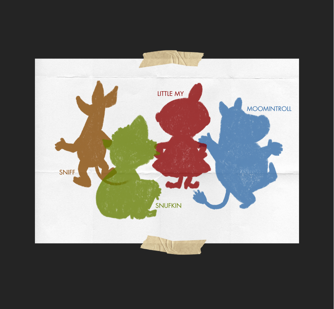 All Moomin characters sillouettes were hand drawn by me on Procreate, inspired by previously produced characterizations.