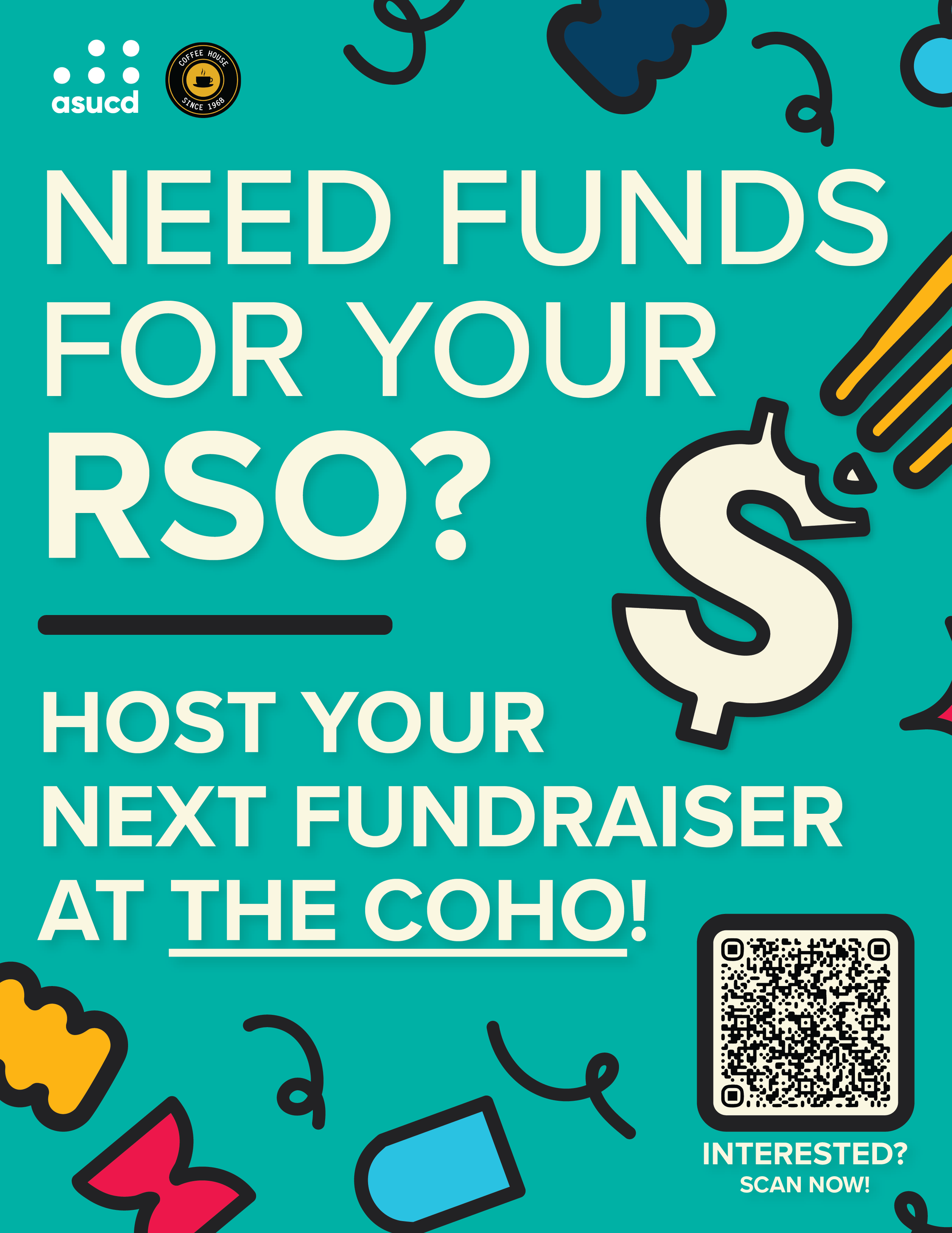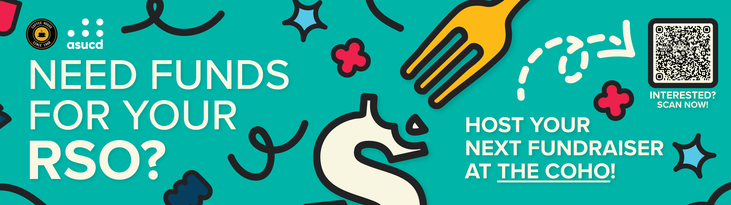A marketing campaign for an UC Davis ASUCD x CoHo Coffee House campaign providing fundraising opportunities for student organizations.