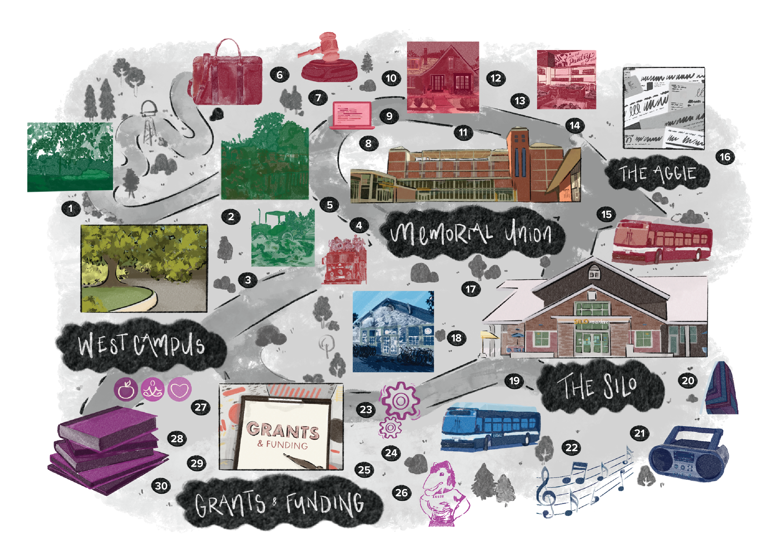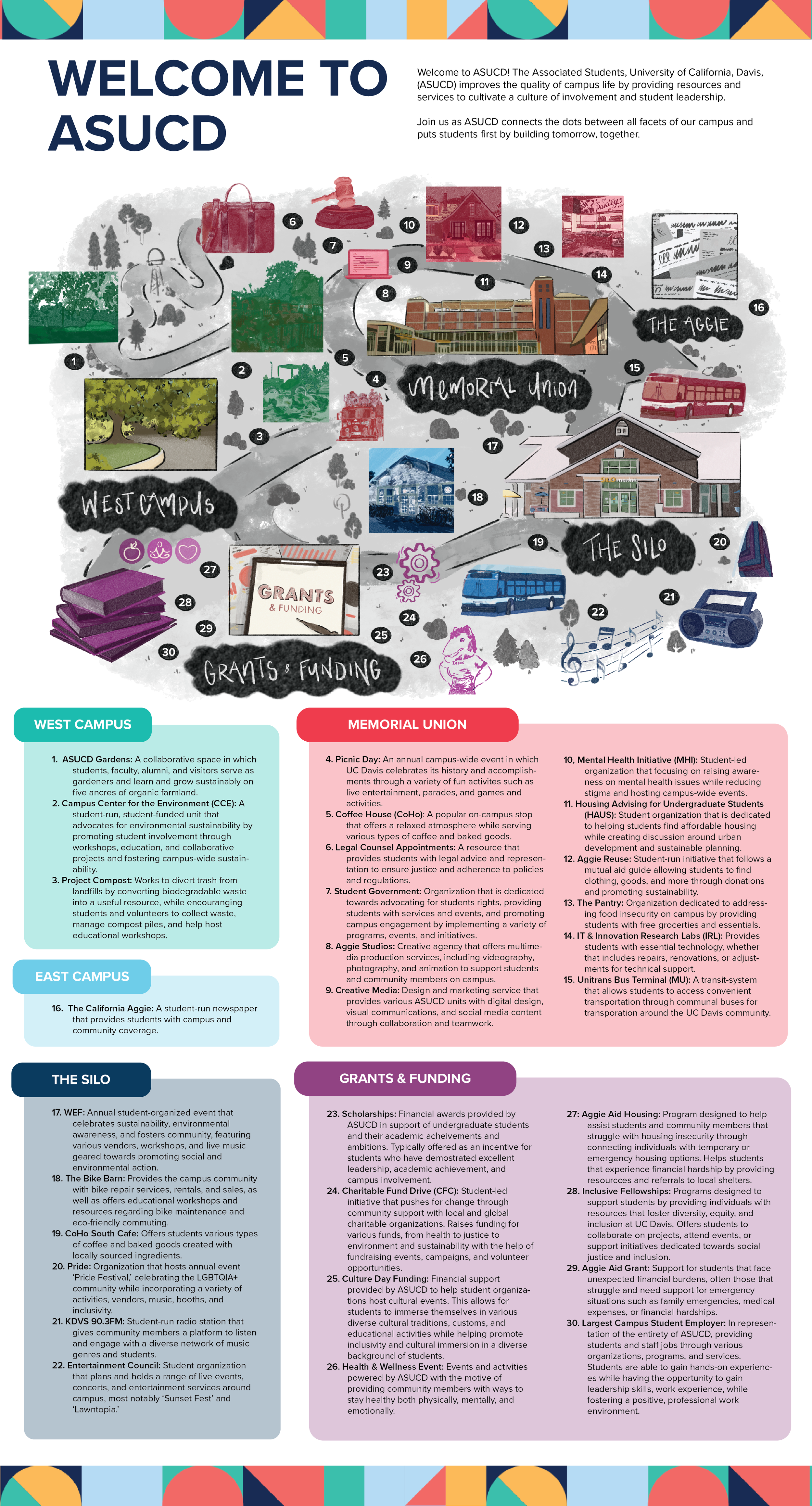 Activity Map distributed during tabling events, teaching and guiding students through each unit within ASUCD.